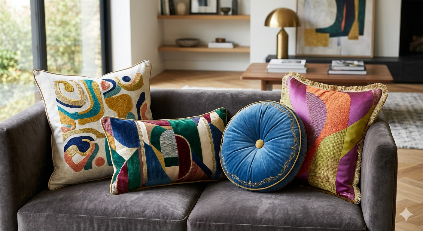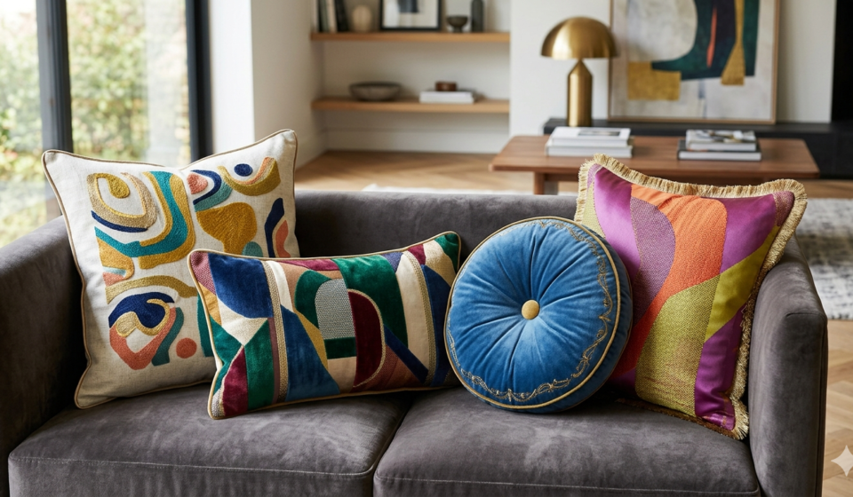 The right throw pillows can completely transform a room, injecting character, warmth, and a curated aesthetic. This collection from our recent image generation perfectly exemplifies how to mix and match colors and textures for a truly stunning modern look.